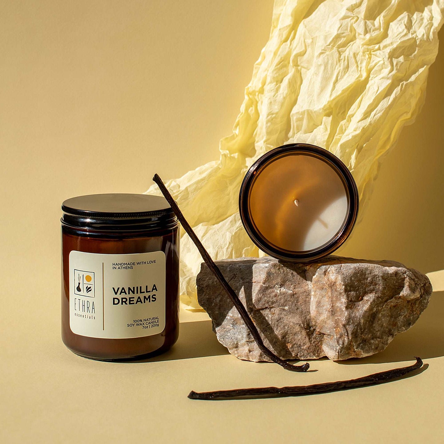 Refresh your space with Vanilla Dreams, a handmade candle that exudes peace and warmth.
